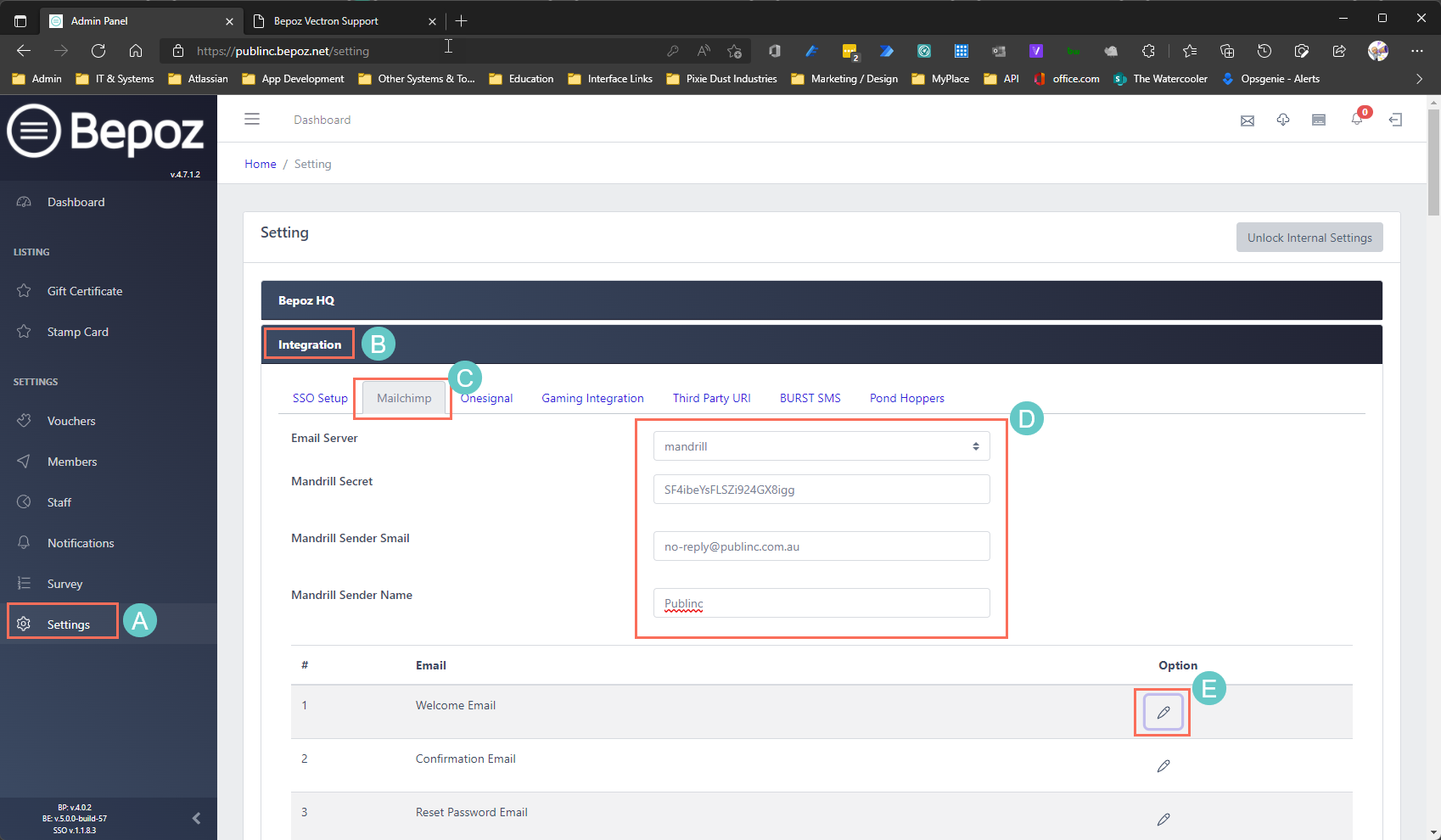 To configure Mailchimp integration, navigate to Settings < Integrations < Mailchimp.