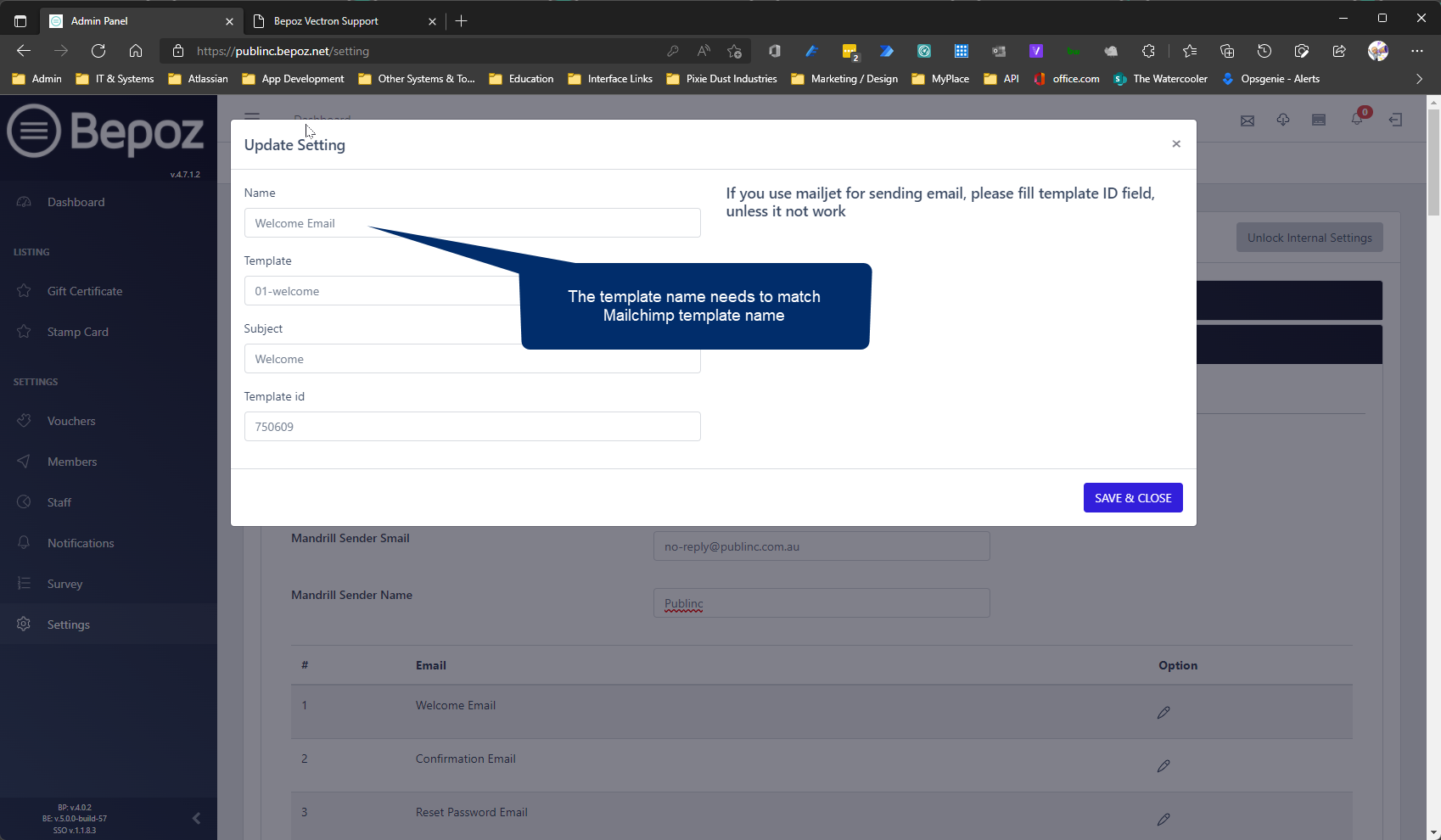 After saving a template in Mailchimp, you must send the template to Mandrill.