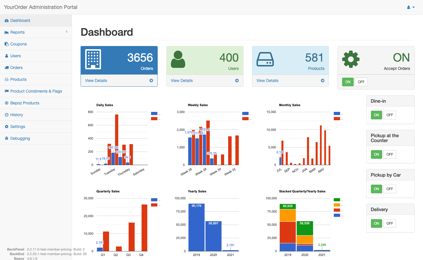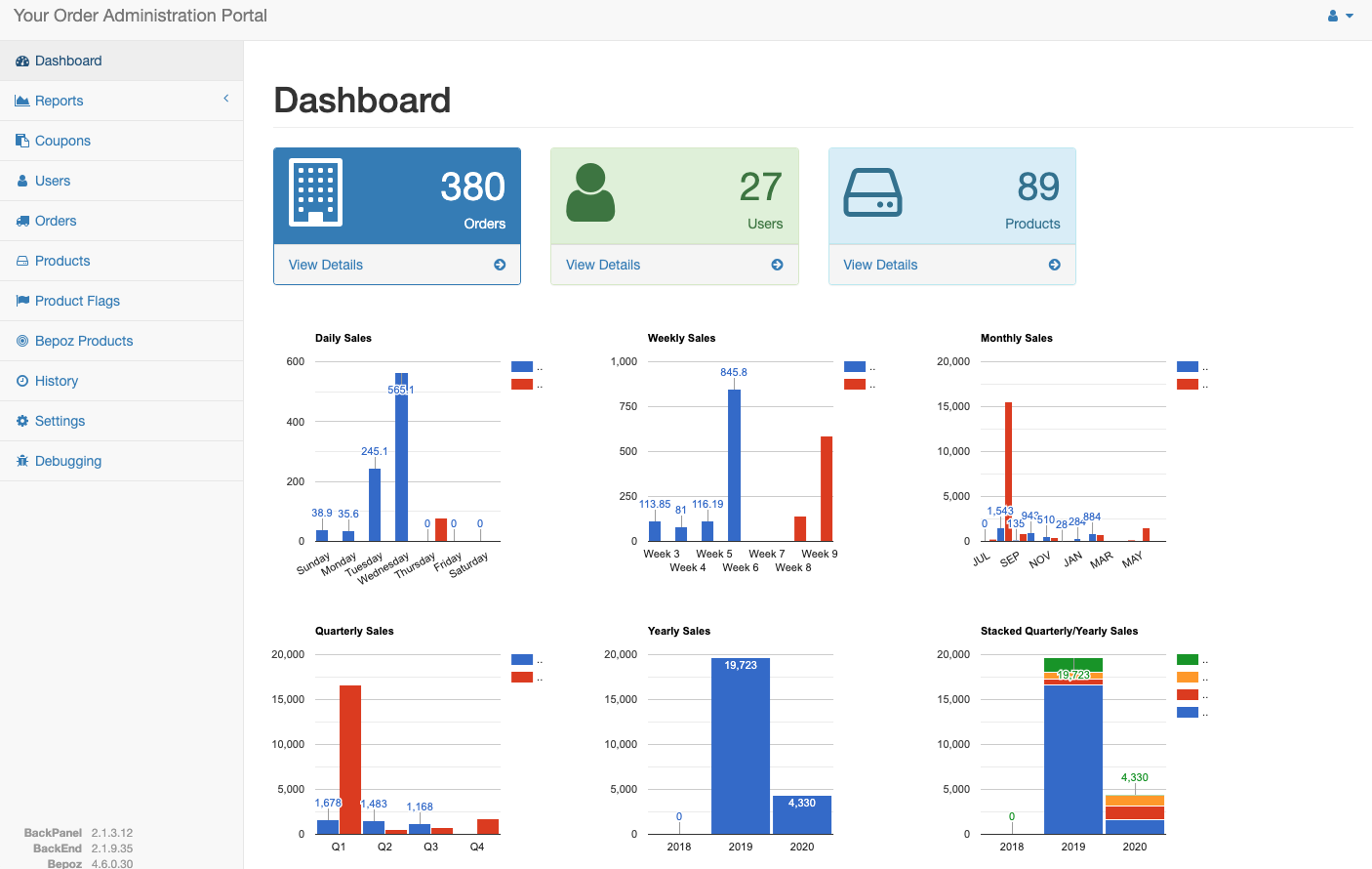 When logged into the Admin Backpanel, it will show the Dashboard by default.