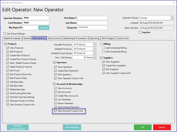 - To access the Custom Info Tab, an Operator must have the View Account Custom Info flag enabled within Operator Maintenance