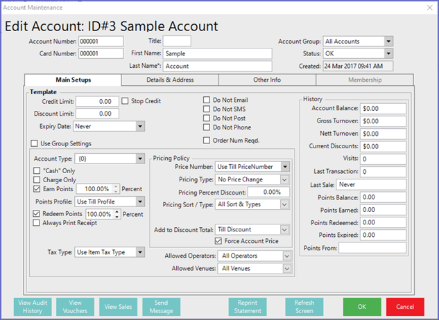 - To access Account Maintenance features, the applicable Operator Privileges will need to be enabled