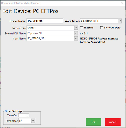 - With the PC_EFTPOS_NZ device setup there are no options to set