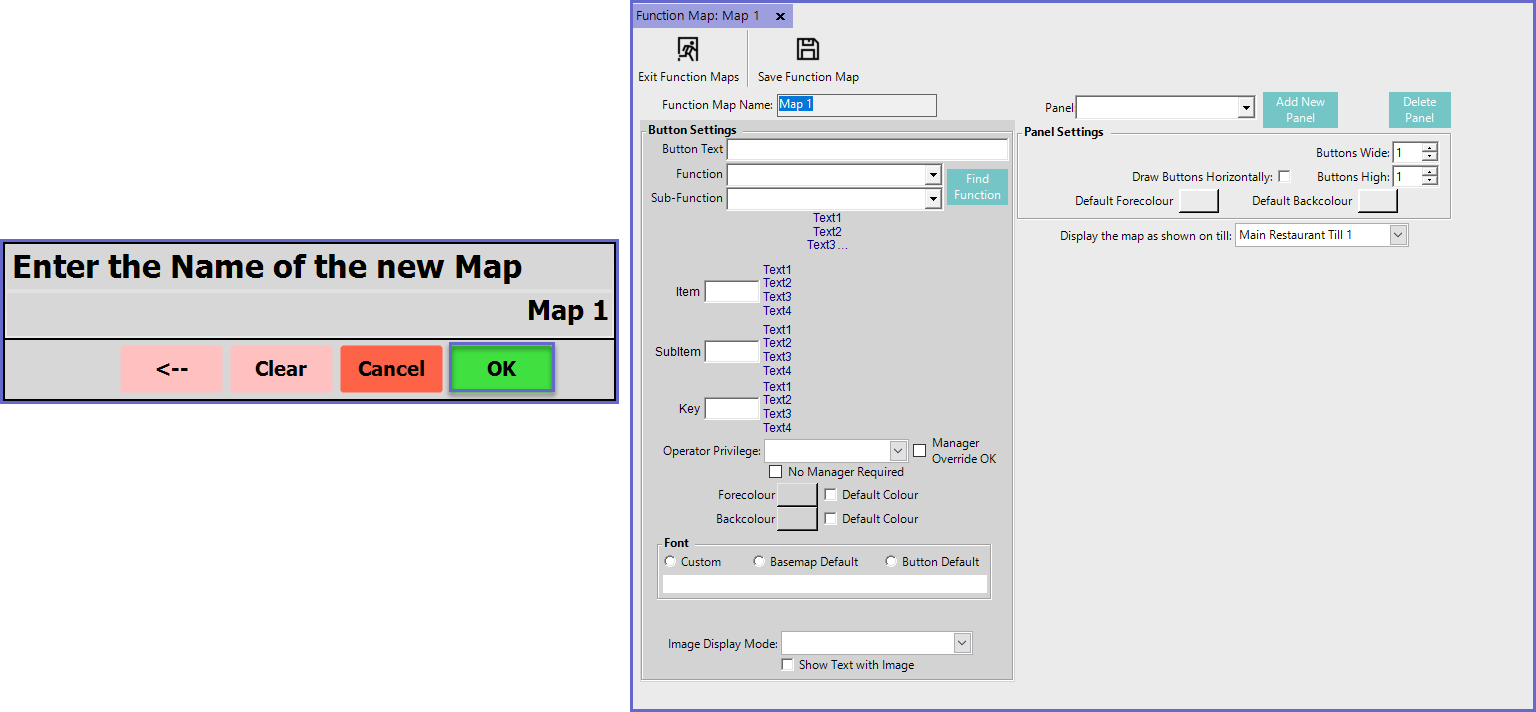 - The New Function Map will now be created and will include default Till Functions from the Template that have already been set up and configured
