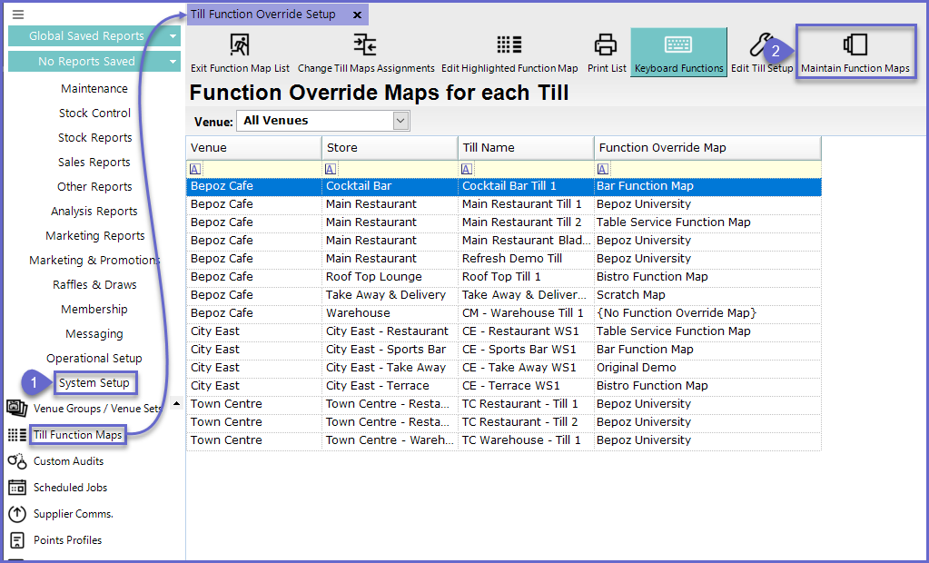- To access Till Function Maps, log on to BackOffice and follow the steps below: