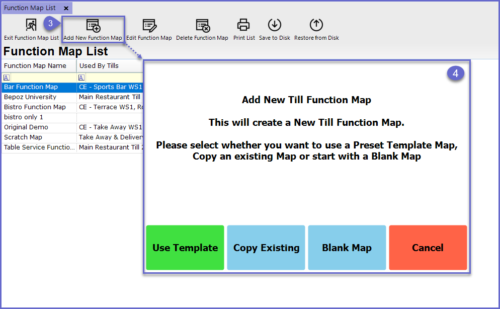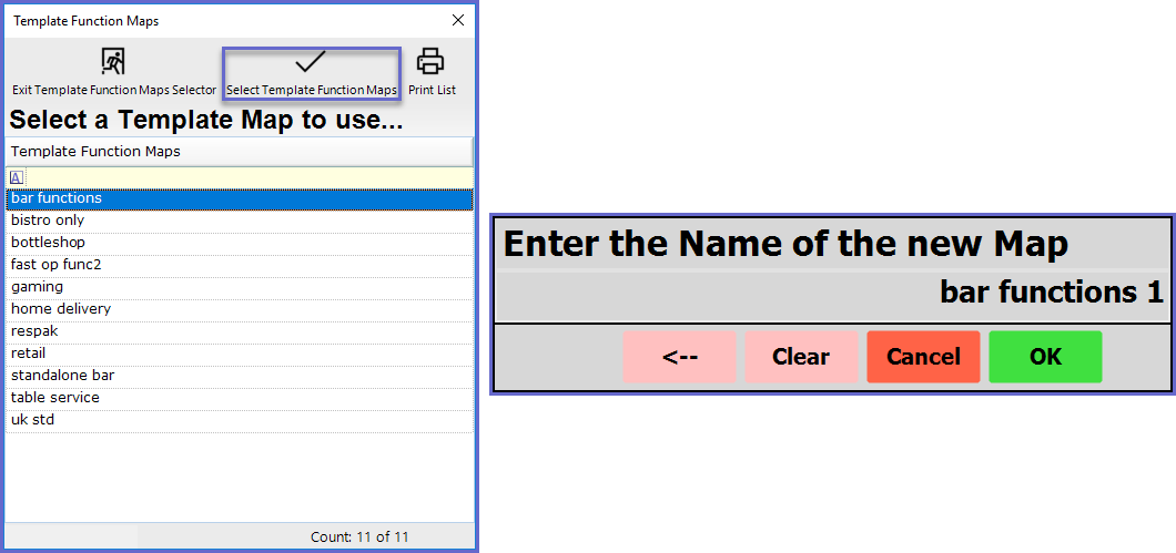 - The Use Template option allows Operators to create Function Maps with default Till Functions already configured