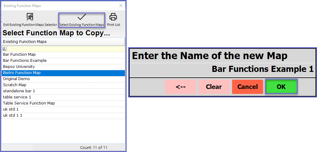 - The New Function Map will now be created and will include all of the Till Functions' configurations from the copied Function Map