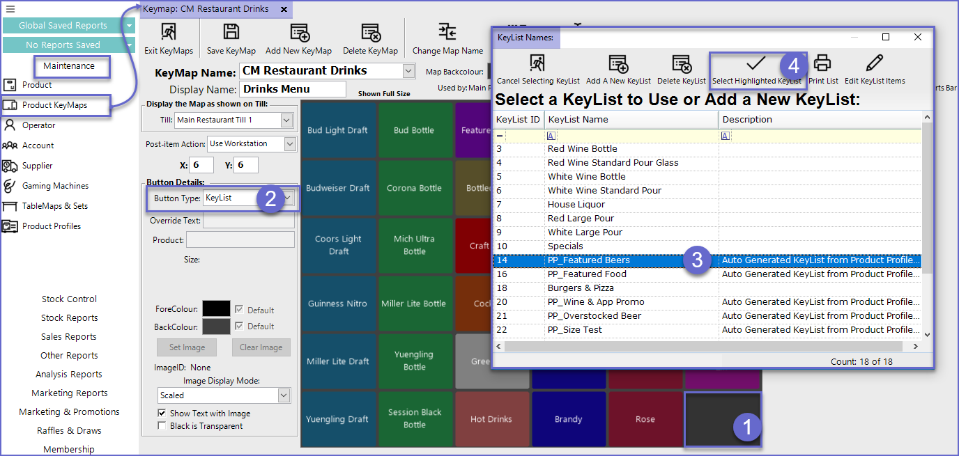 A Product Profile can be configured to Maintain an Auto Keylist which can be utilized in multiple ways. When added to a KeyMap this creates a dynamic Keylist based on the Product Profile's selected Parameters. Which Products meet those parameters at a particular time will be the Products displayed at a SmartPOS Workstation for the Operator/s.