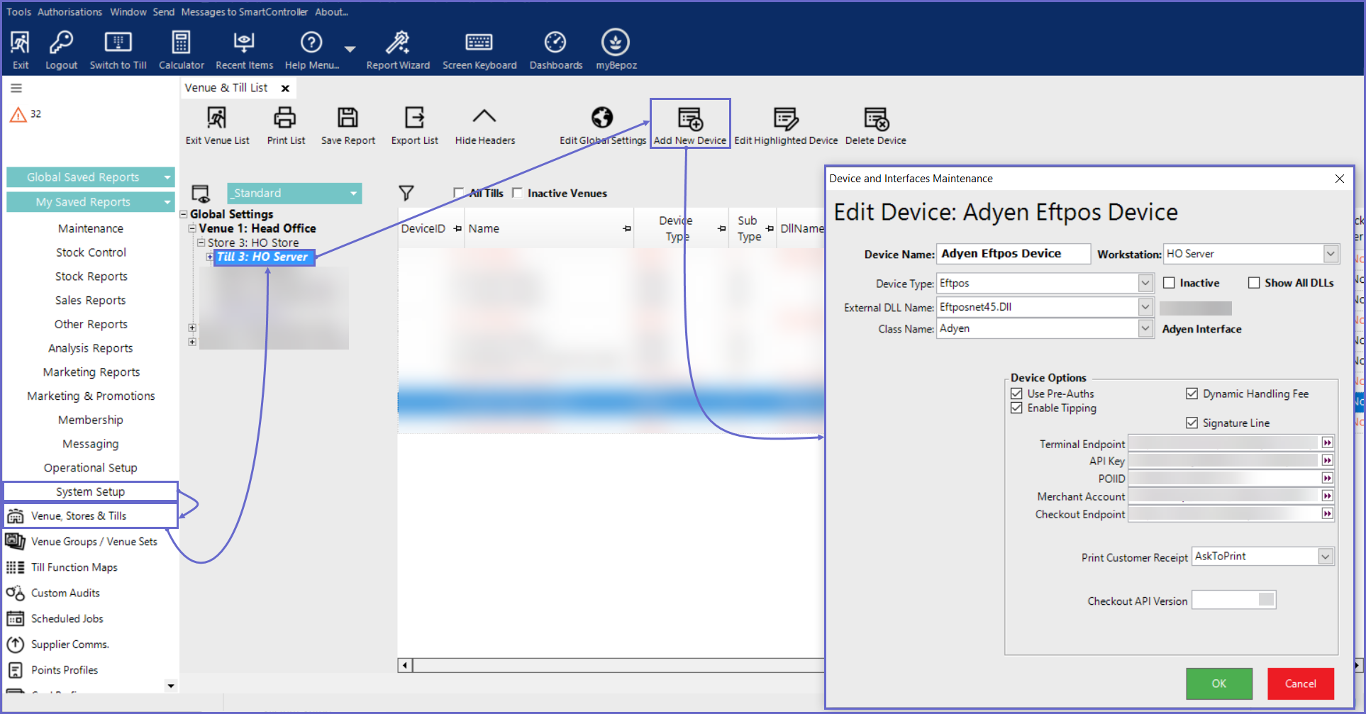 - Select the desired Till within the desired Store within the desired Venue where the Adyen EFTPOS device will be connected to