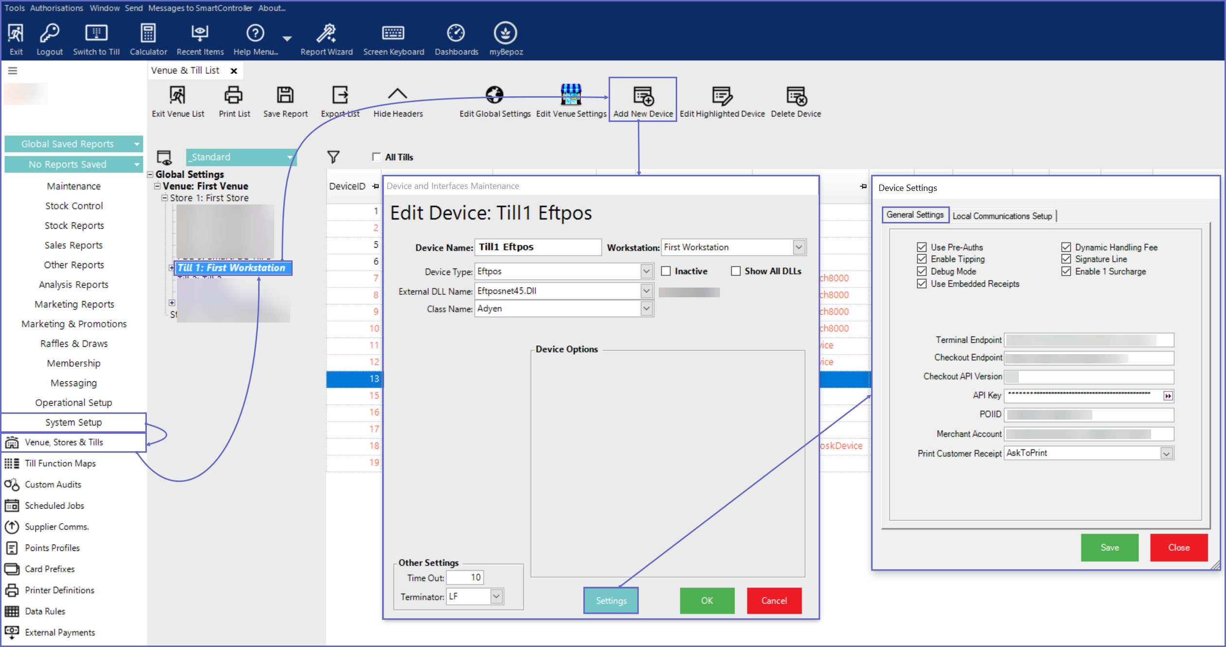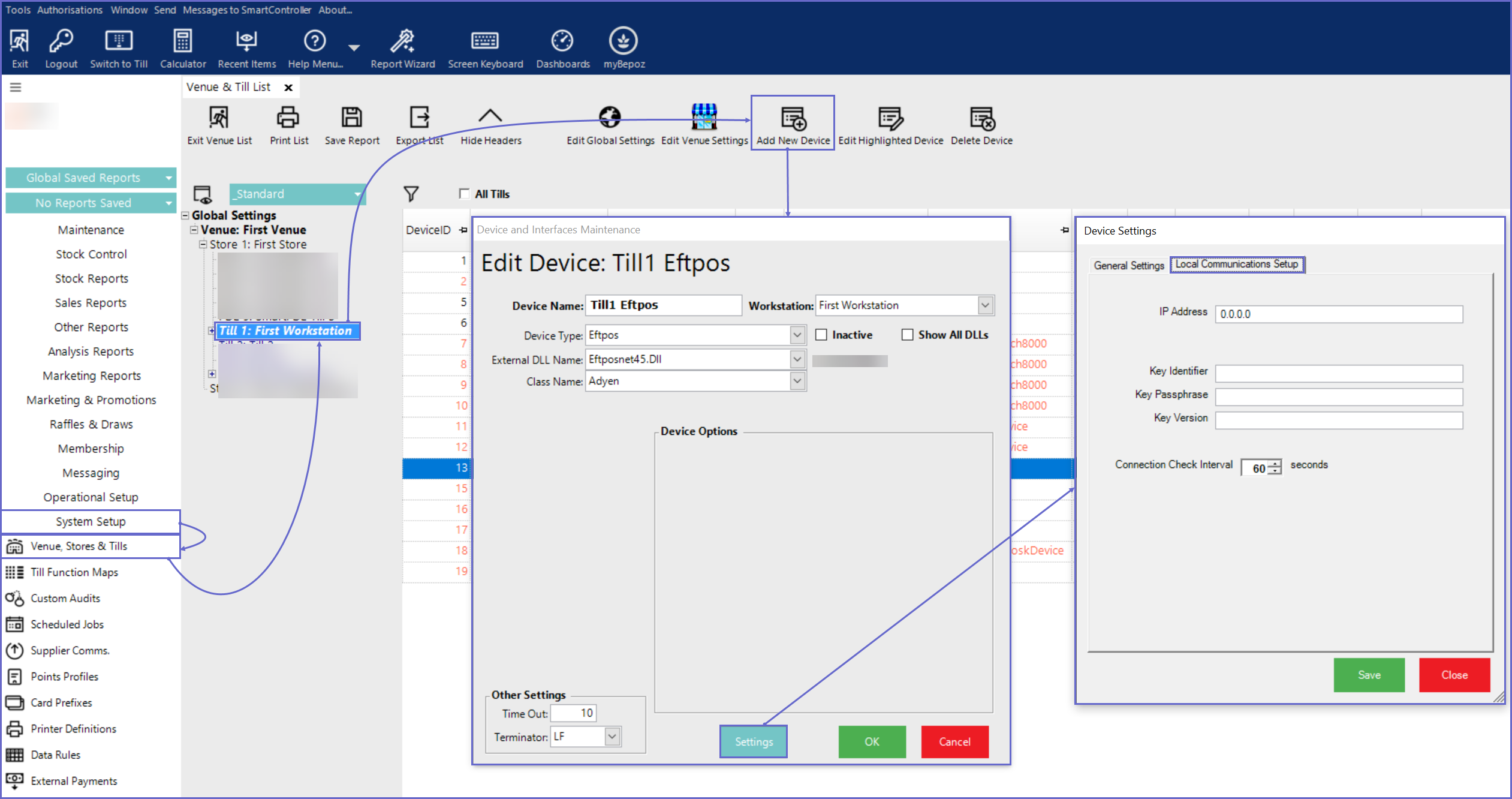 - Select the desired Till within the desired Store within the desired Venue where the Adyen EFTPOS device will be connected to