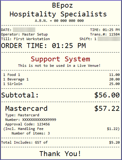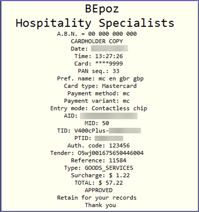 - When the flag is switched ON, the EFTPOS receipt will print on the EFTPOS terminal printer as usual