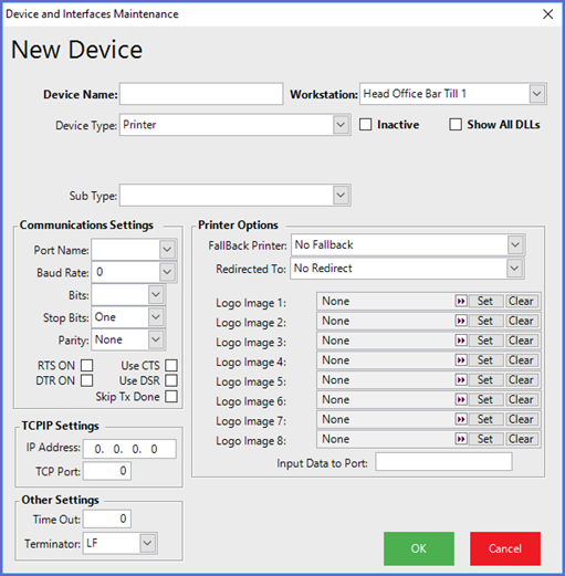- This will open a Device and Interfaces Maintenance window for a New Device