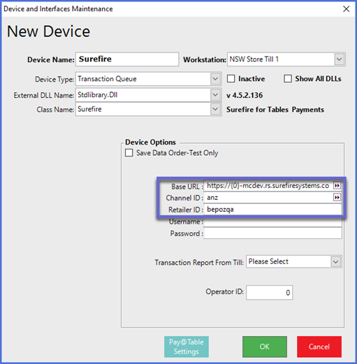- The following information should be provided from Surefire and will need to be entered into the relevant entry fields