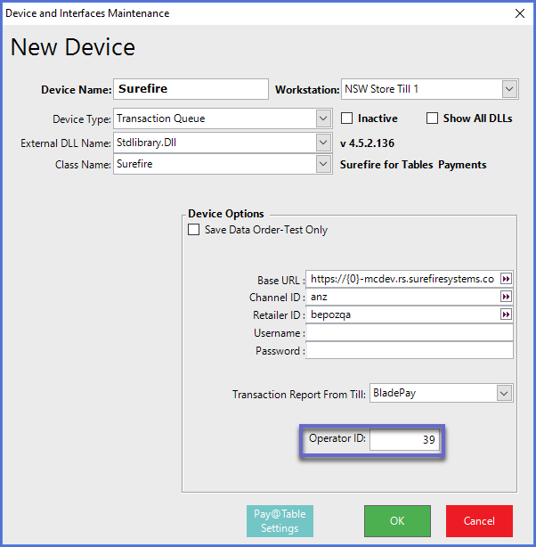 - Prior to using the ANZ BladePay unit, you will need to add and setup a New Device in BackOffice so that the Pay at Table App on the BladePay unit can communicate with your SmartController