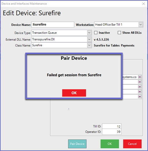 - If any of the following messages appear during the Pairing Process, there is an issue with the Surefire Server