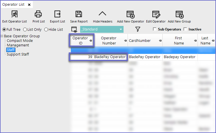 - In this example, a designated Operator has been created for this purpose; this is recommended but optional