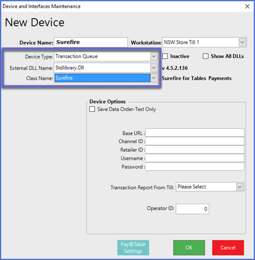 - Back to the Device Maintenance window, select the Pay @ Table Settings button
