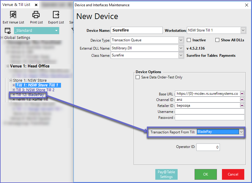 - From the Venue list, select the desired Till that you would like to add the Device to