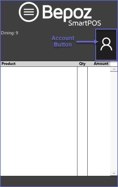 - An Account function will only be visible if the 'Hide Account function' within BackOffice has been disabled