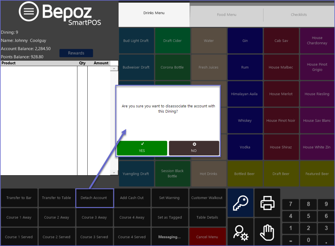 Bepoz allows Operators to attach and detach Account to a Table. This can allow the Account (Member) to Earn and Redeem Points, receive Member Pricing, and Charge a Table Balance to their Account.