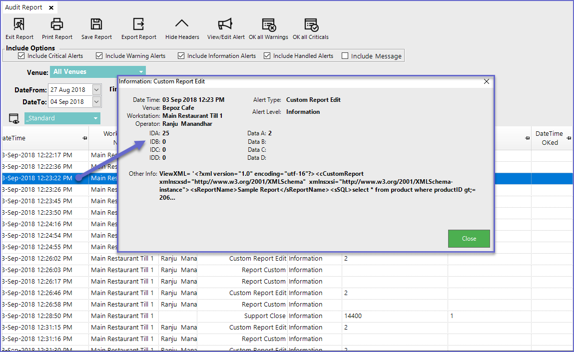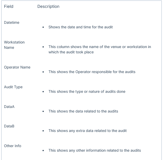 - Audit Data A, Audit Data B, and Audit Other Info can be configured via BackOffice and Custom Audits can also be maintained