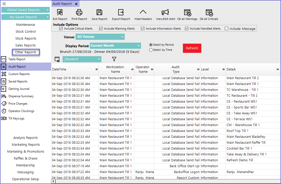 - For an Operator to be able to access and run Audit Reports within BackOffice, the Allow Audit Reports flag within the Reporting tab of Operator Maintenance must first be enabled