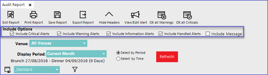 - Select Audit Reports which will open a new Audit Report Window