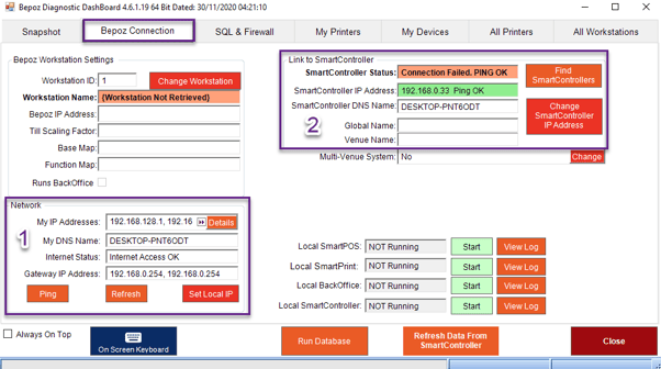 This will launch the Diagnostics Utility to be used to set the correct IP address for the Smart controller workstation.