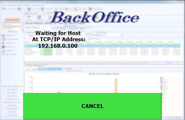 You will be prompted that Backoffice is Waiting for a Host at TCP/IP xxx.xxx.xxx.xxx
