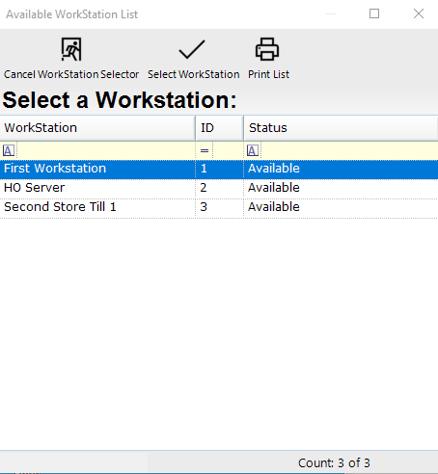 This will then prompt a List of available workstations, select the desired workstation from the List