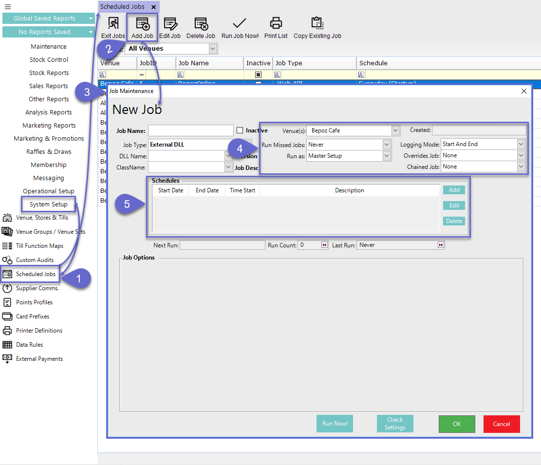- To add these Scheduled Jobs, complete the following steps after logging into BackOffice, then proceed to each Job's individual configuration details below: