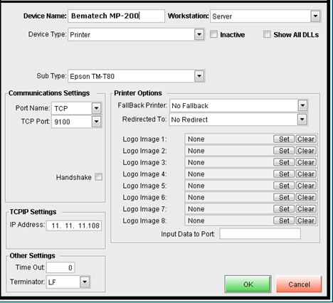 This article contains notes on how to configure a Receipt Printer Device for Model Bematech MP200. NB: While this Printer Hardware can be used along with Bematech KDS, this is not a requirement, and both can function separately. This article is merely a guide for the Printer Device setup, not a comprehensive guide for the Printer Hardware itself.