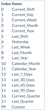These periods are selected by using the below Index Numbers on the function button Key Fields.