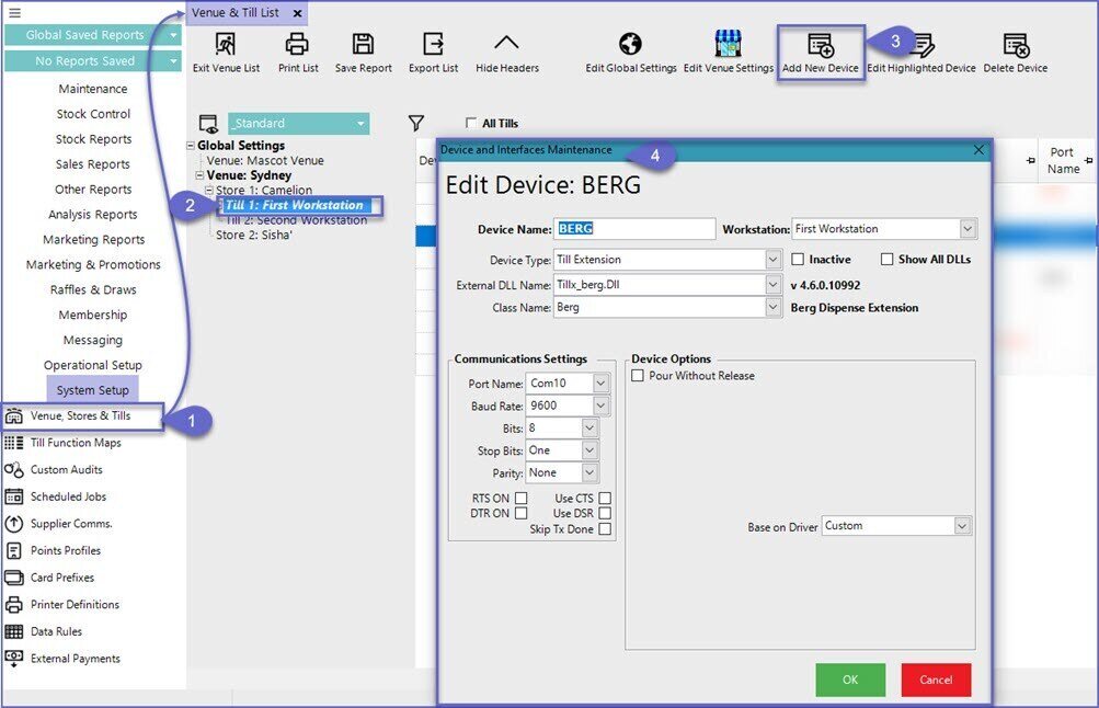 - Base on Driver selected needs to be same on both Berg and Backoffice Device Settings