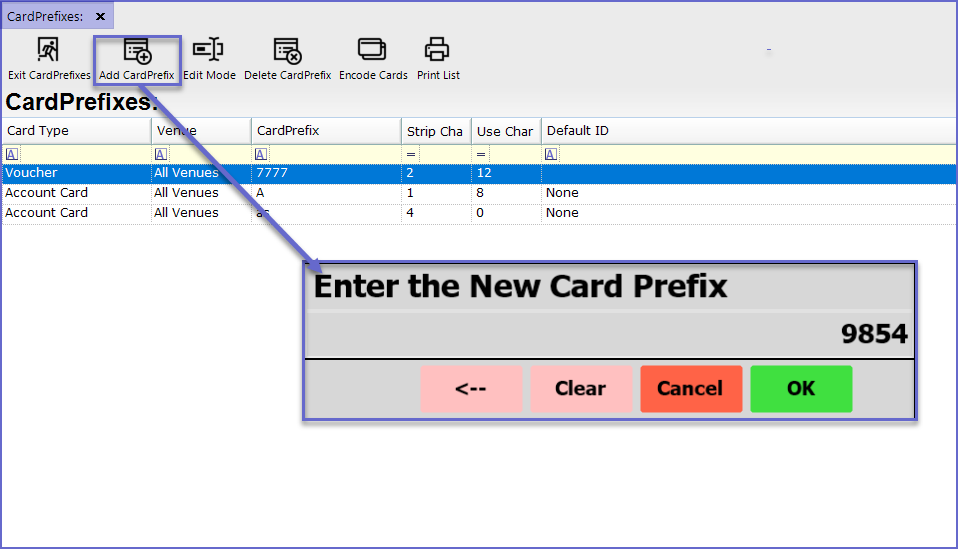 - This window will allow Adding new Card Prefixes, Editing them and Encoding Cards