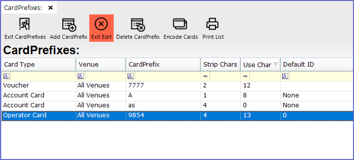 Cards need to be encoded with different prefixes for different uses. I.e., Operators cannot have the same prefix as an Account card and a Gaming card.