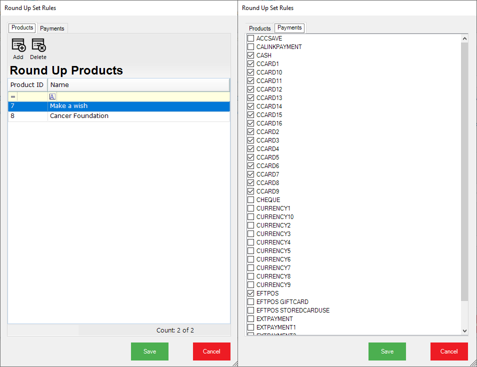 - Payments (Allows you to specify which tender types you want the roundup to trigger on)