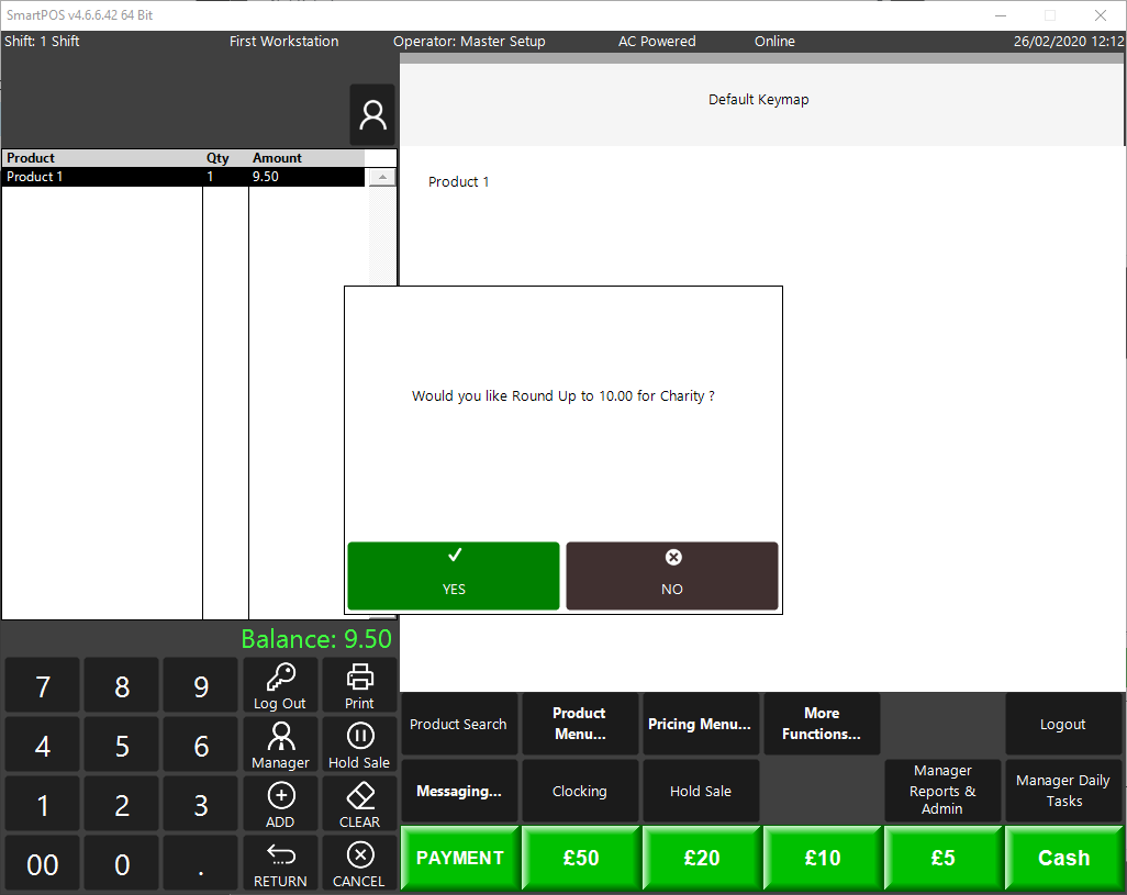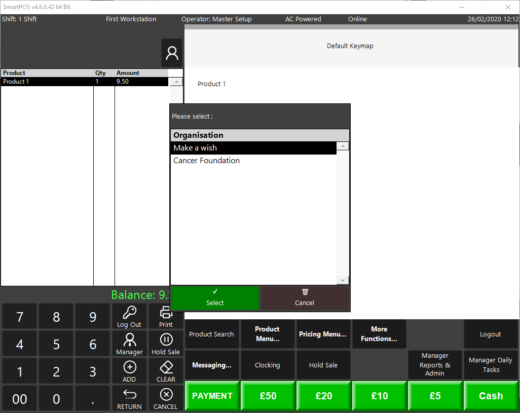 - Products (Allows you to specify a product within Bepoz that you want to associate the donation too for reporting purposes)
