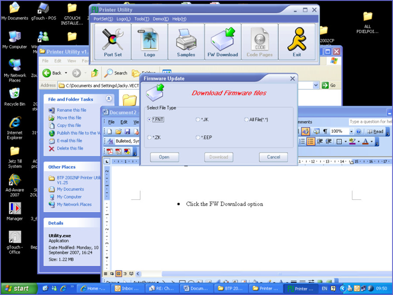 - Open "FW Download" option again and select "*.EEP" option and open file. Then, Press "Download" button to download file in printer. After complete download, NEED TO TURN "OFF" AND TURN "ON" AGAIN OF PRINTER AGAIN