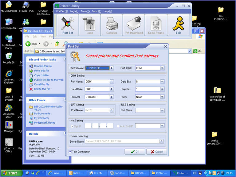 - Use Printer Utility v1.25 program and Press "Port Set" option