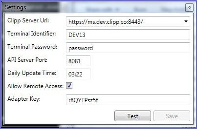 - The ‘Clipp Adaptor Key’ is as per setup in Installing Clipp POS Adaptor Terminal Adapter in point 8