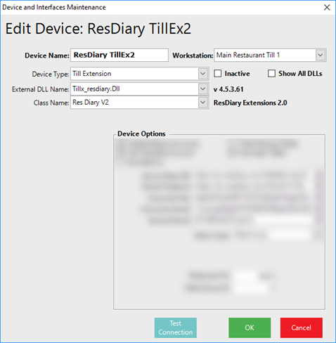 - Each interface, and therefore, each Till Extension will have different Device Options that are distinct to the interface