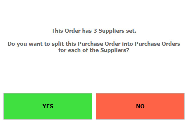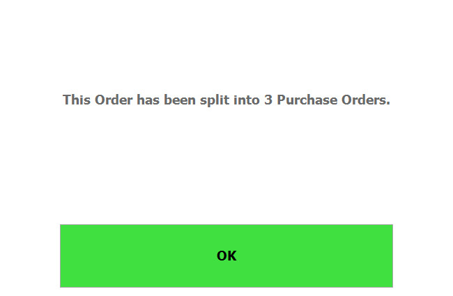 - Once YES is selected, the system will split the P.O's and a prompt with a message as below will appear