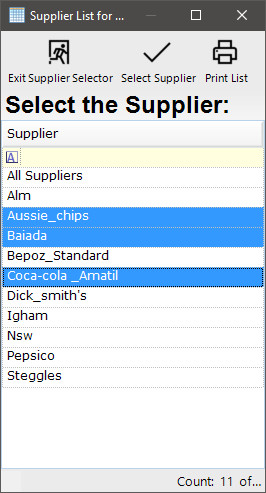 - Once the Suppliers have been selected, Click on the Select Supplier Button on the top of the prompt