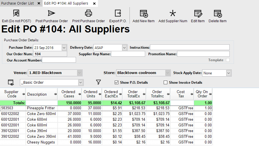 - A new window will open in back office Called Edit PO #xxx:All Suppliers. sample Below