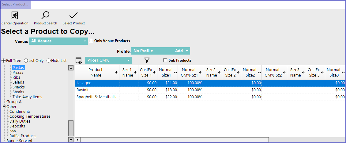 This will open a Select Product.. window which allows for selecting a Product to copy
