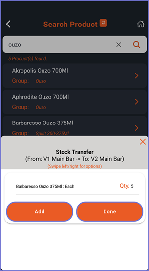 Once the From & To Venues and Stores are selected, click on the 'Add' button at the bottom to create a product transfer