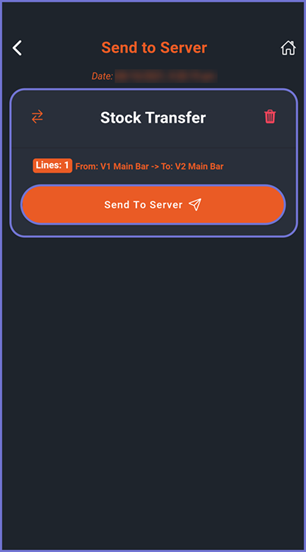 After a Yes selection, the Transfer is sent to the Send to Server screen