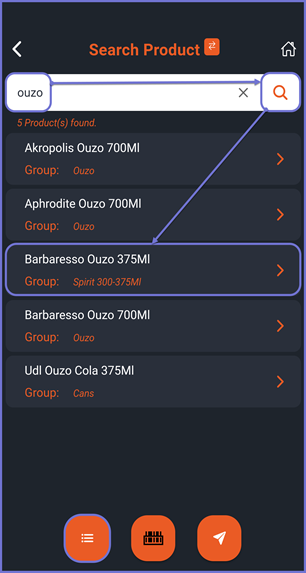 Proceed and search for a desired Product by typing the Product name or by using the mobile Barcode Scanner option at the bottom of the screen