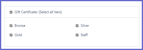 - Click Gift Certificate (Select all tiers) to choose every tier or individually tick each box next to desired tiers