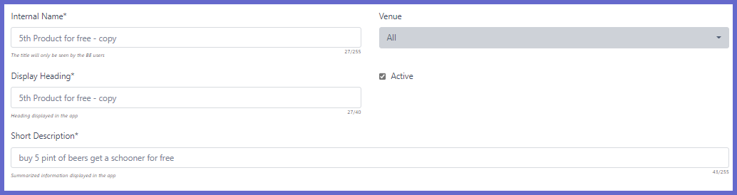 - A small sentence to describe the stamp card. It is recommended to include, actions to complete the stamp card and the reward upon completion